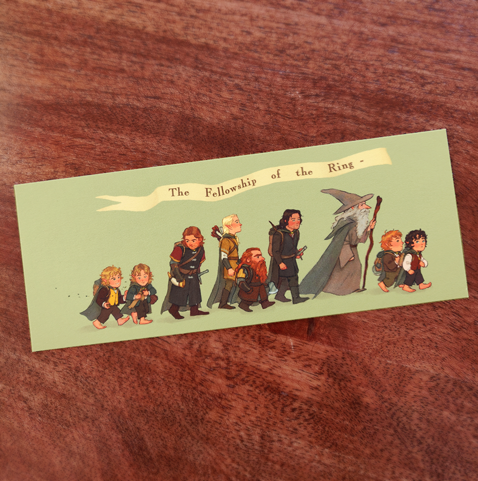 The Fellowship of the Ring on their cute little way to destroy evil ☆゚°˖* ᕕ( ᐛ )ᕗ Little bookmark printed on 350gsm recycled paper - 5,5 x 14 cm