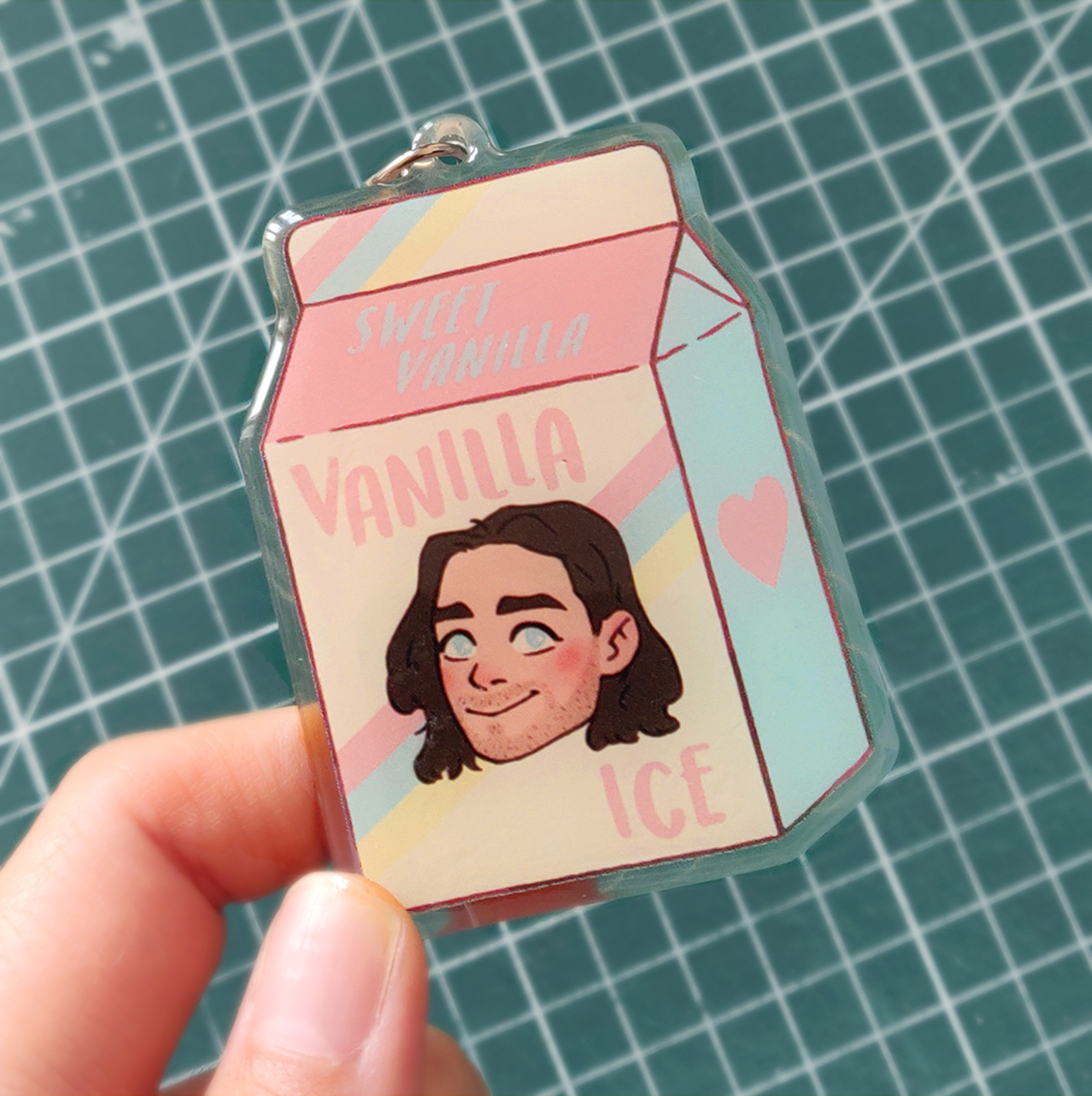 Bucky Barnes/ Sebastian Stan (aka Vanilla Ice) charm. Double sided acrylic charm with epoxy layer (on one side) - 7 x 5 cm - chain and loop included ofc