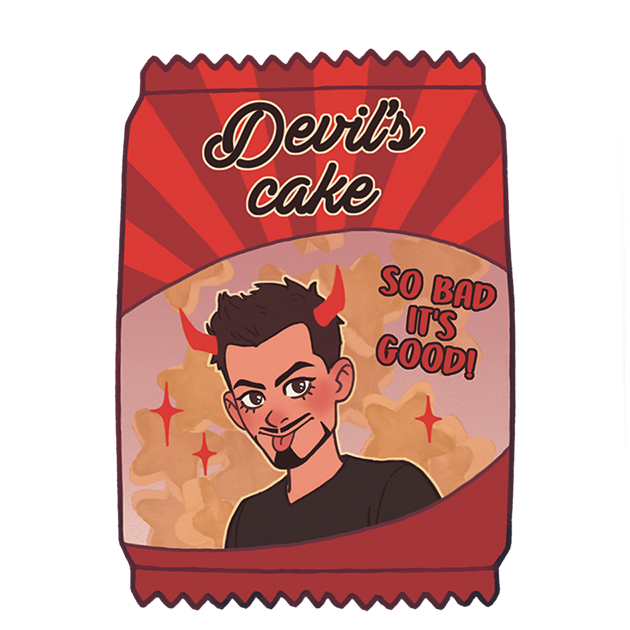 Tony and his Devil's Cake charm. Double sided acrylic charm with epoxy layer (on one side) - 8 x 5,5 cm - chain and loop included ofc