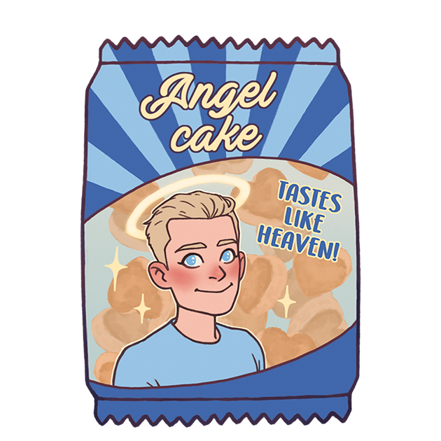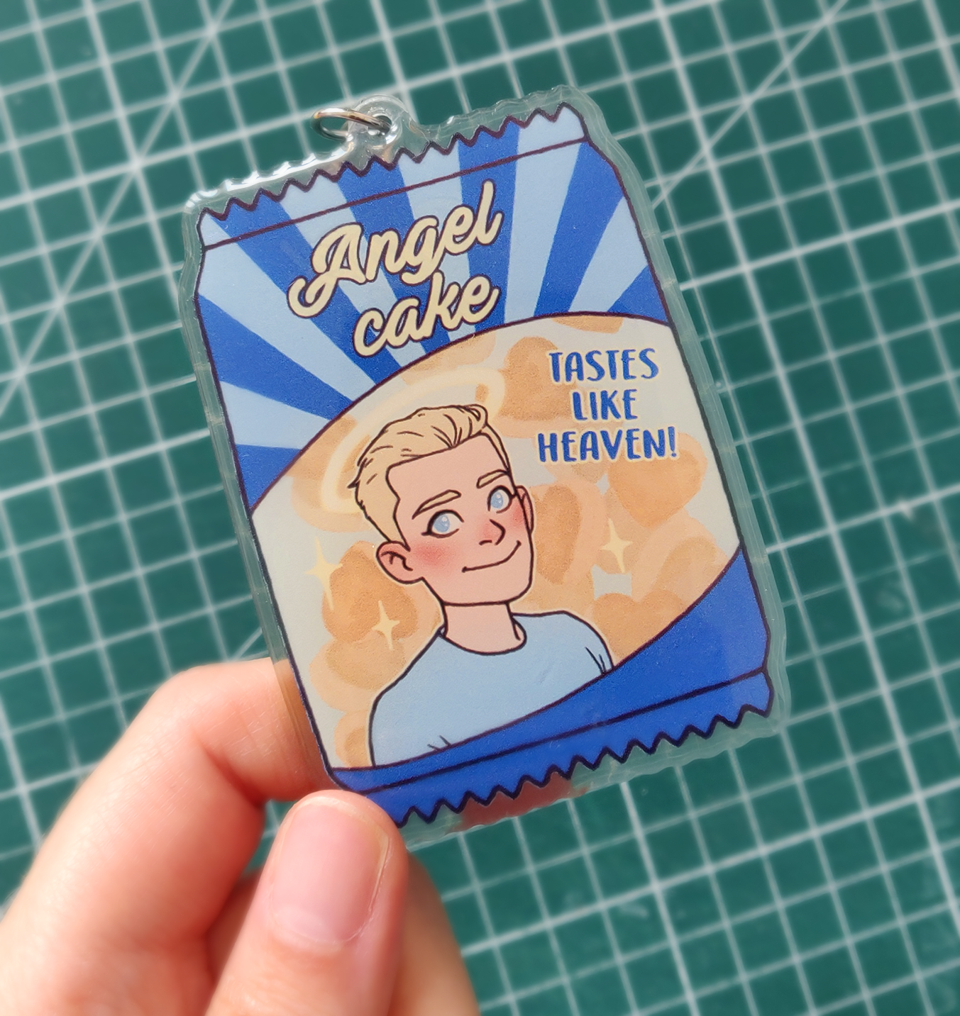 Steve and his Angel Cake charm. Double sided acrylic charm with epoxy layer (on one side) - 8 x 5,5 cm - chain and loop included ofc